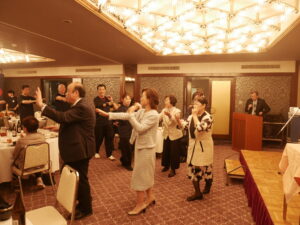 懇親会の締めくくりには、太鼓と小西会頭の歌に合わせ、舞鶴小唄を披露しながら、女性会らしい華やかで心温まるひとときを分かち合いました。